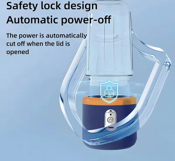 Answer 1: This device features six stainless steel blades for maximum extraction, automatic pulp ejection for an uninterrupted drinking experience, and is USB rechargeable for convenience wherever you are.